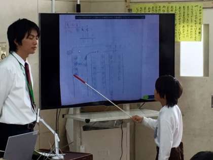 課題をそれぞれの子どもたちが考えました。子どもたちは書画カメラを使って発表してくれています。