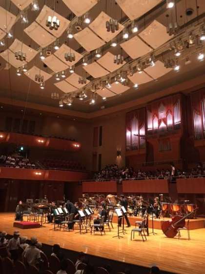 大和田小学校の座席は、なんと最前列のほぼ中央です。子どもたちはコンサートがはじまっていないのに、豪華な雰囲気に興奮気味です。