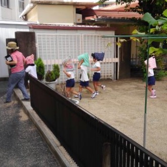 大和田小学校に隣接して、大和田幼稚園があります。午前に、大和田幼稚園の避難訓練が行われました。東南海地震等で津波が発生したことを想定したものです。