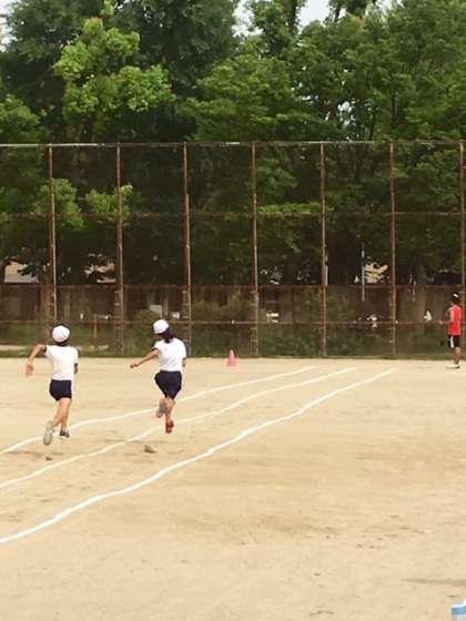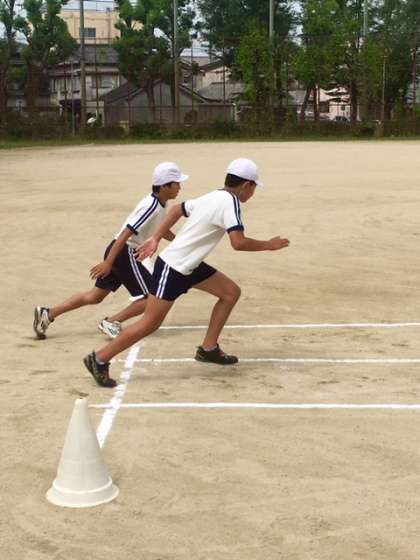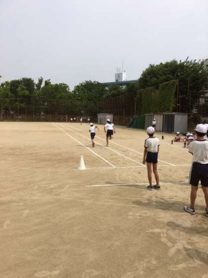 6年生がスポーツテストをしています。昨年からずいぶん運動能力が向上したと思われます。