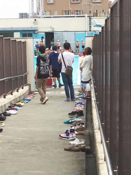 1時間目、5年生は体育の授業でプール水泳です。