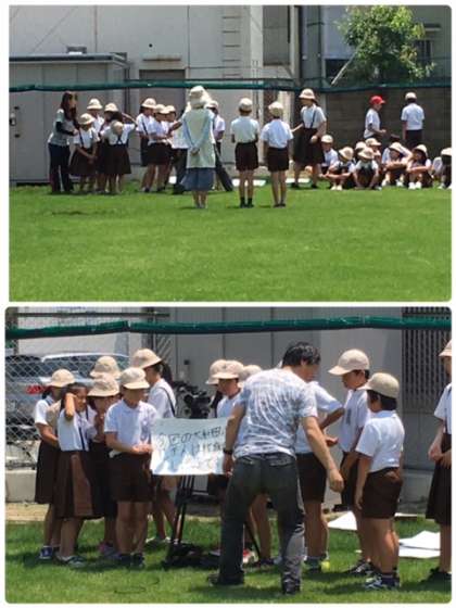 5年2組は、大和田小学校の新しいシンボル「芝生広場」について、大和田小学校校庭芝生化実行委員会の事務局でPTA会長の辻様をゲストにお迎えしてインタビューしました。