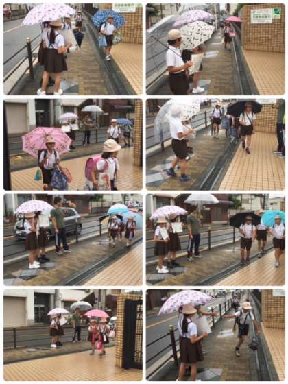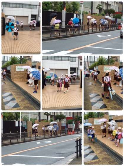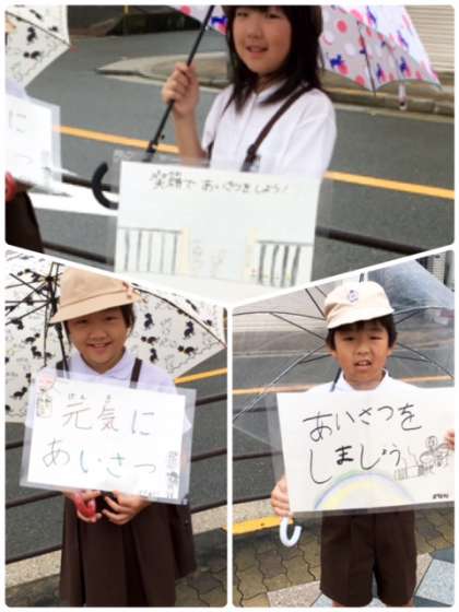 昨日とうって変わり、昨夜から降っていた雨が残り、しとしとと雨が降っています。運営委員会の皆さんが今朝も「あいさつ運動」をしています。