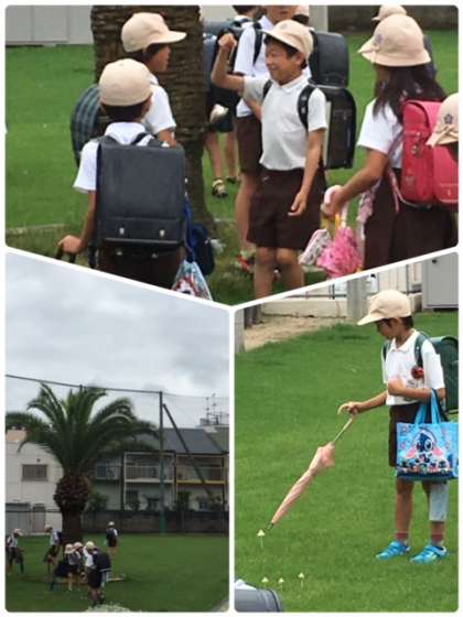 今朝は登校後、多くの子どもたちが芝生広場に集まっていました。子どもたちは「キコガサダケ」に興味津々です。