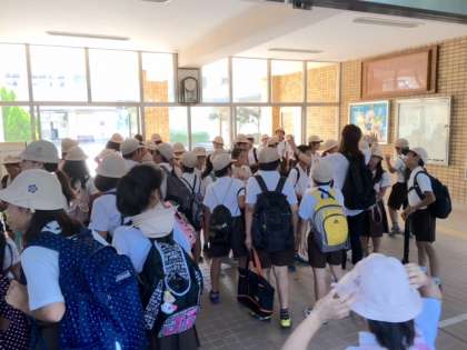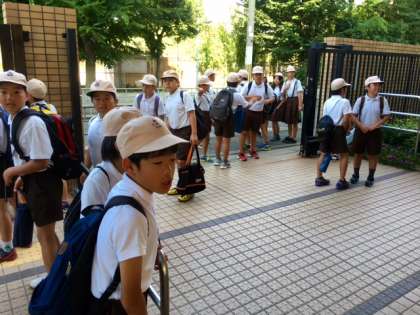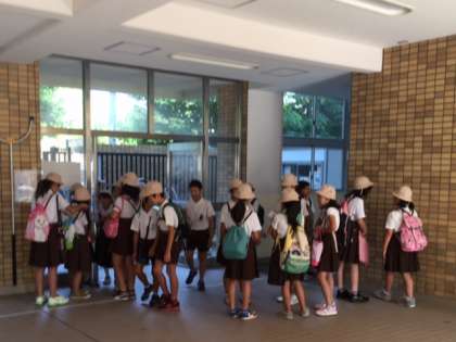 今朝も真夏の太陽がギラギラ輝いています今日は5年生が社会見学で、朝早くからNHK大阪放送局に出発します。