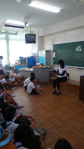 6年1組では、シリーズで読まれているので子どもたちは集中して聞いていました。