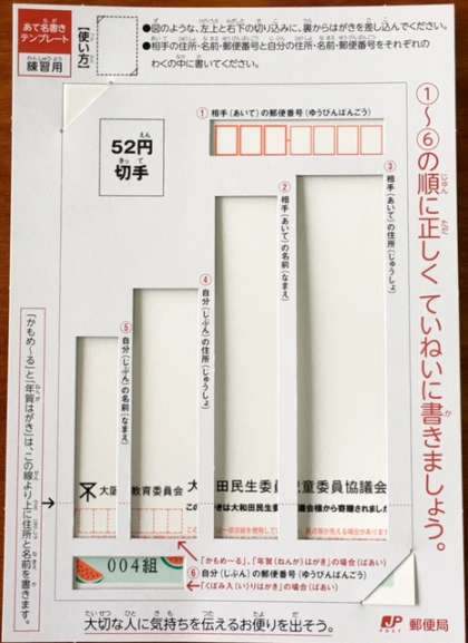 先日、大和田郵便局から届けていただいたハガキを配付され、ハチ高原から家族に暑中見舞いを出す計画です。お父さんお母さん家族の皆さん楽しみにしていてください。