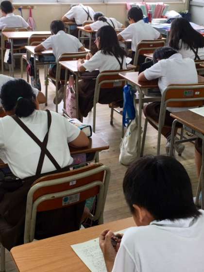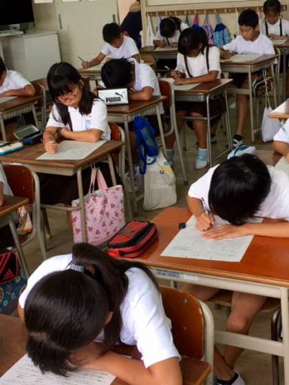 5年2組が診断テストを受けています。どの顔も真剣です。