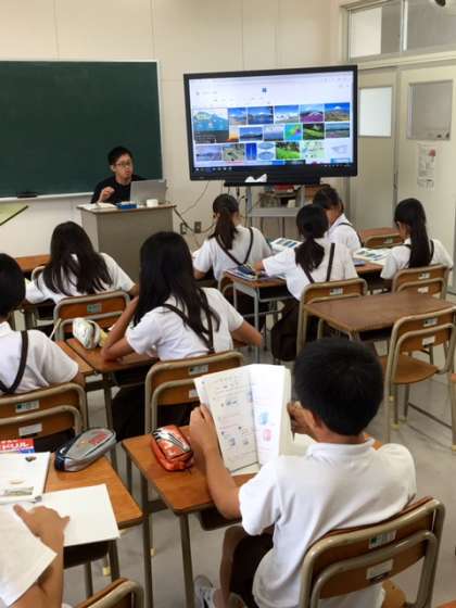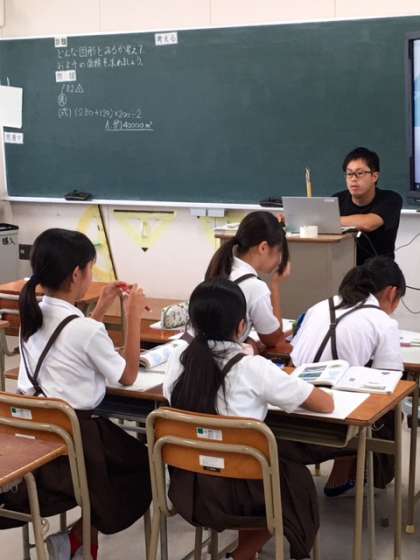 先ほど、坂田先生の授業は、湖の面積を計算していましたが、6年2組は習熟度別少人数の授業のもうひと組は、森先生が富士山の底面積を計算する授業を受けています。インターネットを大型ディスプレイに映し出して情報を集めて考えます。おもしろい授業です。
