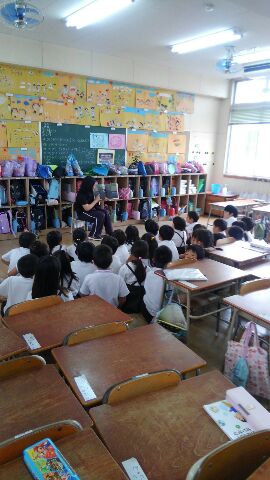 1年生は、わくわくする絵本の世界にひきこまれています。