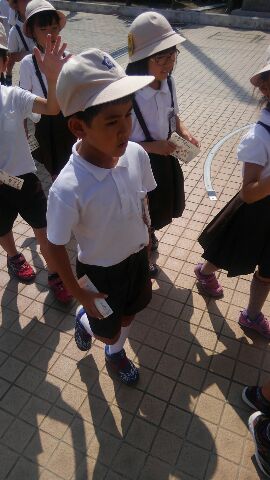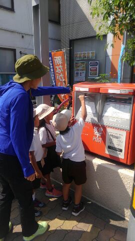 2年生は生活科の学習で、書いたはがきを郵便ポストへ入れに行く体験をしました。