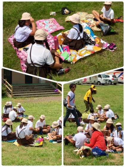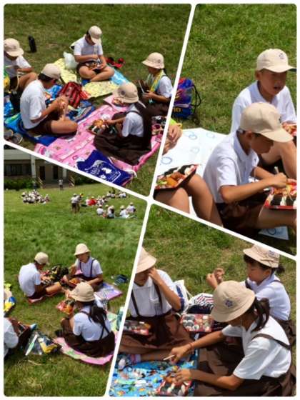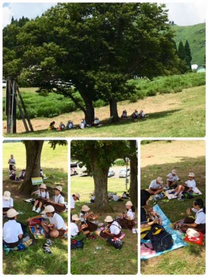 ハチ高原の涼風にあたりながらお弁当をいただきます。
