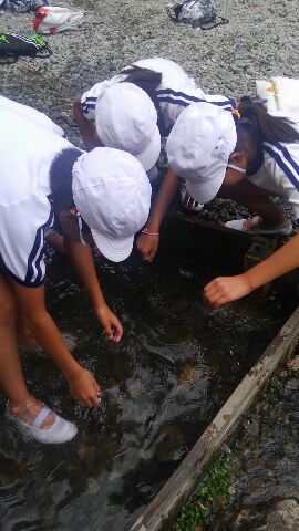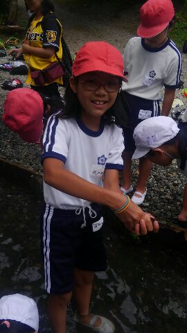 川の水温を感じながらも、子ども達の目はキラリとしていて、魚つかみに夢中です。