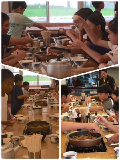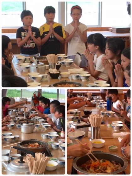 児童代表のいただきますのあいさつで、夕食が始まりました。しっかり食べてください。