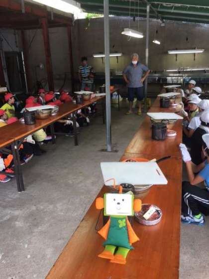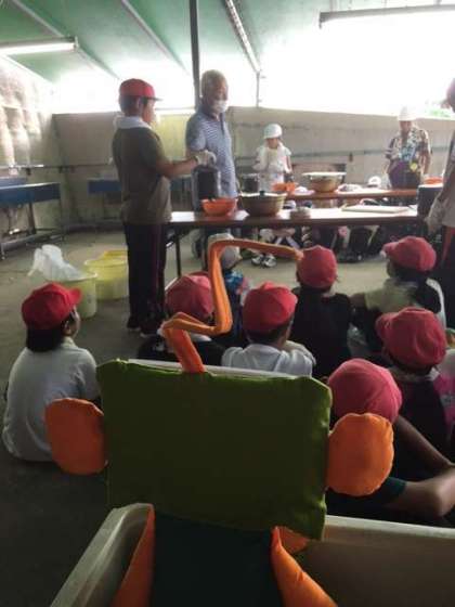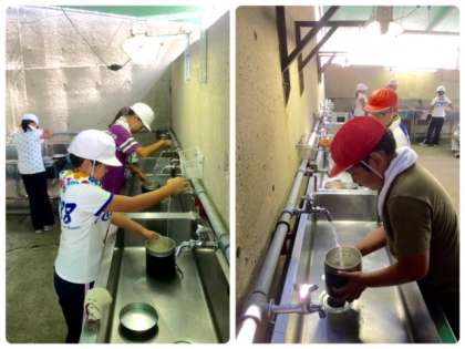 飯盒炊爨の開始です。説明を聞いてご飯係の子どもたちが飯盒でご飯を洗います。