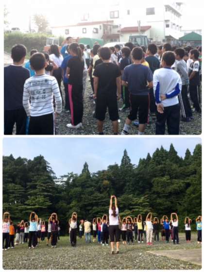 朝の集いです。やっと太陽が顔をみせてくれました。今日もいい1日にします。