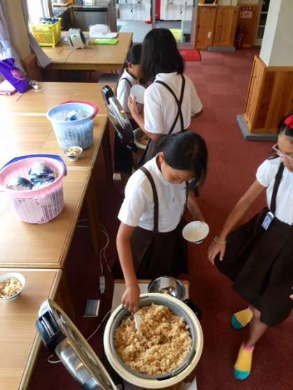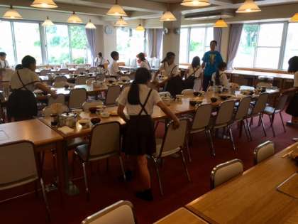 食事係さんが、林間学習最後の食事の準備をしてくれています。