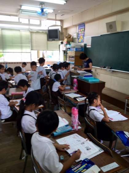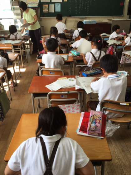 1年生の授業の様子です。夏休みの宿題の点検や答え合わせをしています。