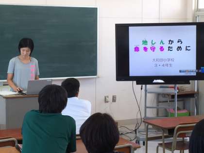 今日の午後は、10月9日の日曜参観に予定している「親子防災教室」に向けて、教員研修会をしました。講師は担当の田中翔子先生です。