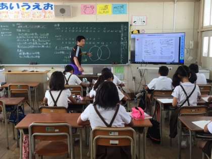 1組2組の児童が習熟度別少人数制で授業をしています。