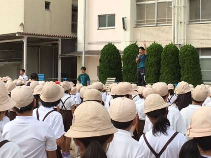 また、始業式に続いて、リオ・オリンピックの内村航平選手の金メダル受賞後のインタビューの話をしました。一人の外国人記者から内村選手に少し皮肉的な質問が投げかけられました。「あなたは審判に好かれているから良い得点が取れると感じていますか?」