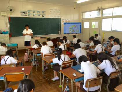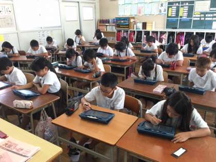 4年1組は社会科の授業です。1人1台のタブレットパソコンを使って「火事の原因」について学習しています。