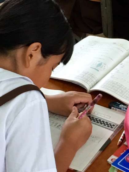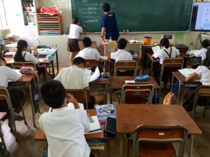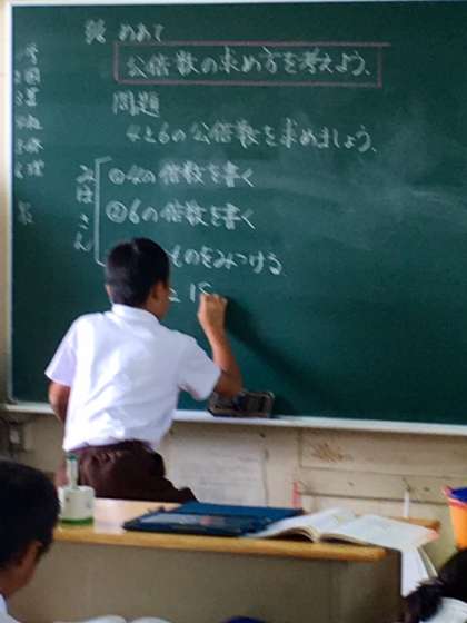ノートを使って考えた内容を、黒板に書いて発表します。
