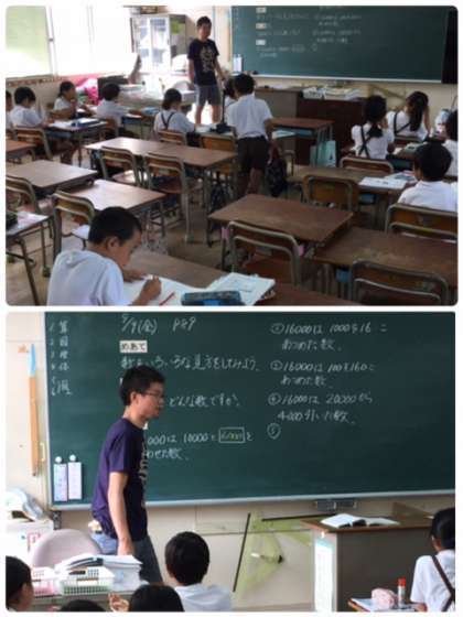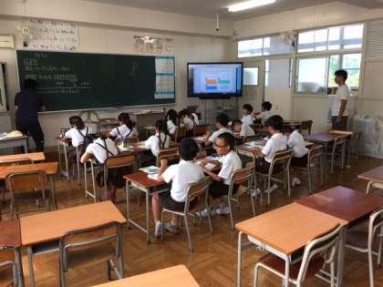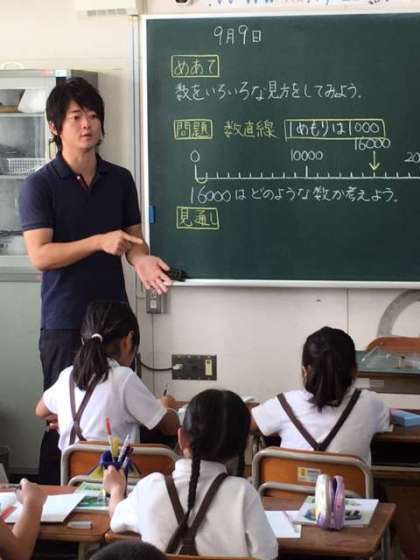 3年1組は、習熟度別少人数制で算数の学習をしています。ひとクラスを二つに分けて2つの教室で学習しています。秦先生のクラスでは、山本先生も加わり、ティームティーチングでていねいな指導をしています。