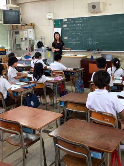 2時間目、3年2組は少人数授業で算数を勉強しています。担任の依田先生と、習熟度別少人数授業担当の秦先生の2グループに分かれて、きめ細やかな学習をしていました。