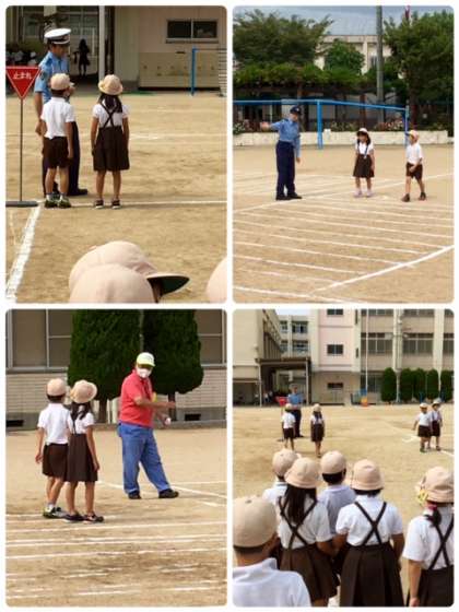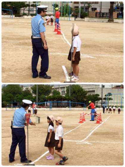 2時間目1年生の子どもたちは、西淀川警察署のおまわりさんと、西淀川区役所危機管理・安全グループの職員の皆様に、交通安全指導をしてくださいました。
