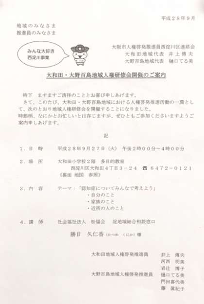 本日、午後2時より本校2階多目的室にて写真の地域人権研修会が開催されます。