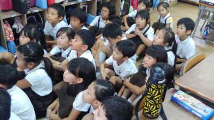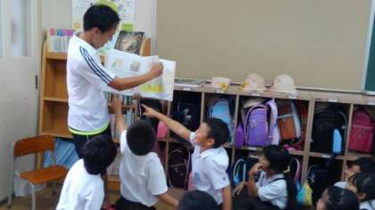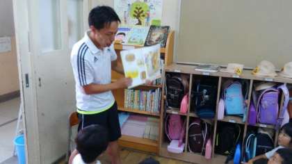 すると、4年1組の石倉先生が本の読み聞かせをしていました。子どもたちは本に集中し、とても楽しそうにお話を聞いていました。