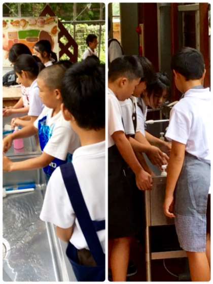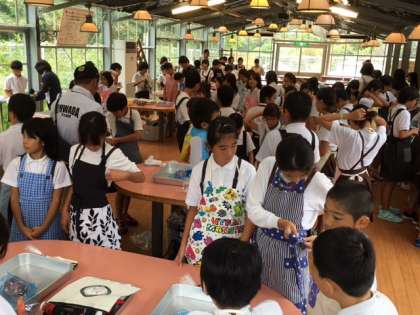 ソーセージ手作りの体験がはじまります。手をしっかり洗って、エプロンをつけてスタンバイオッケー!です。