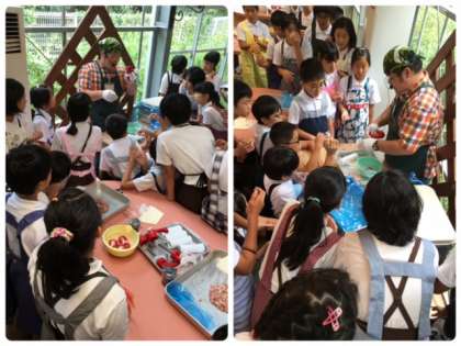 ひき肉をこねたら、いよいよヒツジの腸にひき肉を詰めて行きます。しっかりと説明を聞いています。