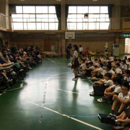 4年生がほうきでそうじをしたり、片付けをしたりした後、児童代表の終わりの言葉で終わりました。