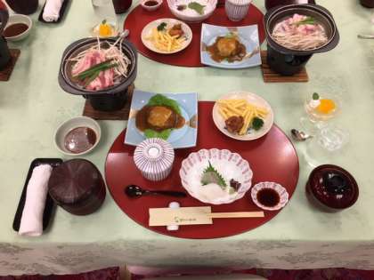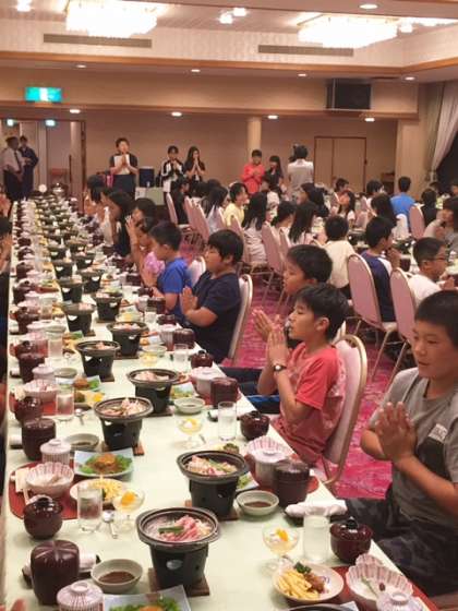 午後7時過ぎ、たかの間に6年生91名が勢ぞろいしました。夕食の時間です。