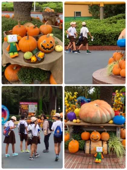 ぐろーばーさんもハロウィンのデコレーション前で記念撮影を撮りました。