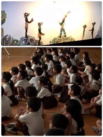 子どもたちは、日ごろ体験したことのない影絵の世界に引き込まれていますか