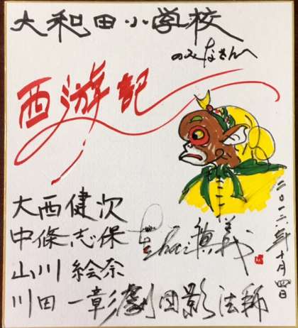 高学年の観劇会も終了しました。劇団影法師の皆さんから色紙を頂戴しました。