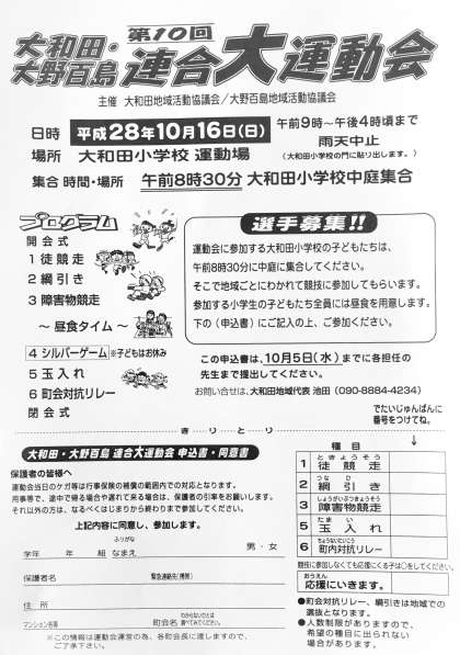 大和田・大野百島連合 大運動会の申し込みは明日締め切りとなります。お忘れ無く!