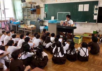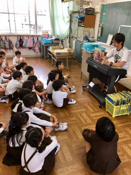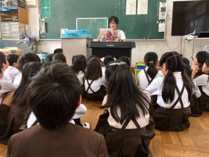 2年2組の読書タイム、今日は紙芝居を読んでもらいました。