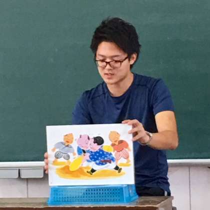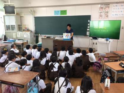 4年2組の読書タイムは、鈴木先生の紙芝居です。