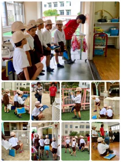 10班は、大和田幼稚園に行きました。中には大和田幼稚園の卒園生もいました。金田園長先生に園長室に招いていただきました。大和田幼稚園のいろんな所を見せていただき、持参したタブレットパソコンを出して写真をたくさん撮りました。