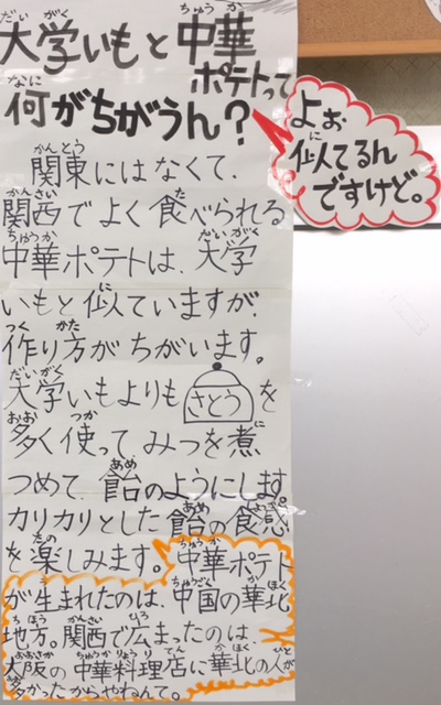 今日の献立は、中華煮、大学イモ、レーズンパン、ミニフィッシュ、牛乳です。