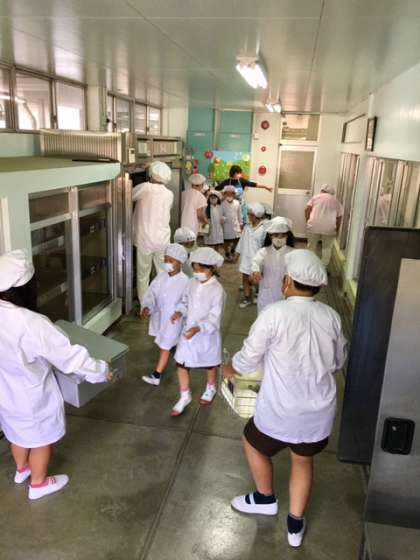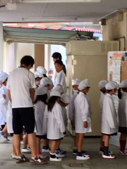 給食当番さんが頑張っています。