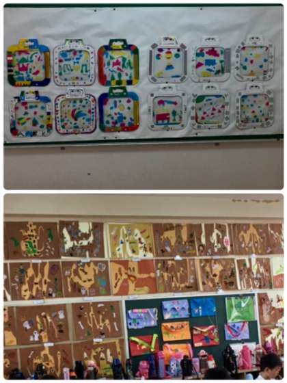 学校の掲示板には子どもたちの作品がたくさん掲示されています。のびのびとした作品を見ているととても豊かな気持ちになります。