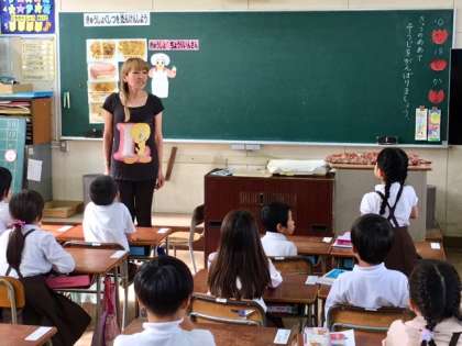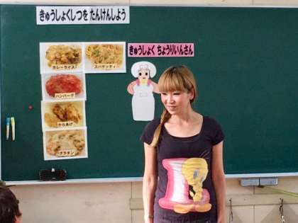 1年2組は栄養教諭の岡山先生の食育の授業を受けています。