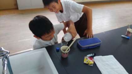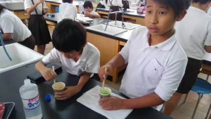 2時間連続で、理科室で活動している4年2組の科学クラブの子達は、昼から特に楽しいと言っていました。理由を聞くと理科が好きだからだそうです。