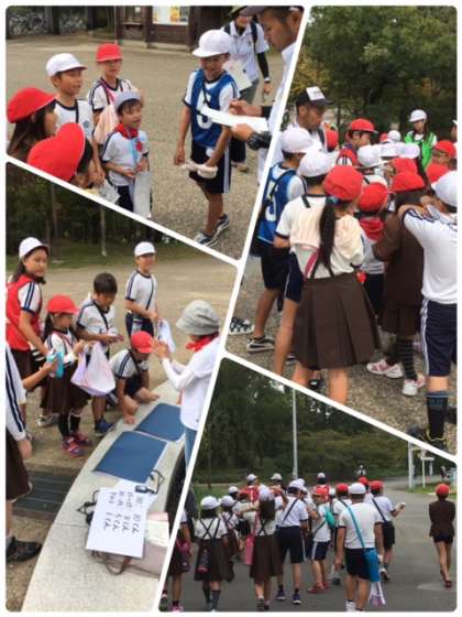 たてわり班でポイントを回ります。オリエンテーリングです。