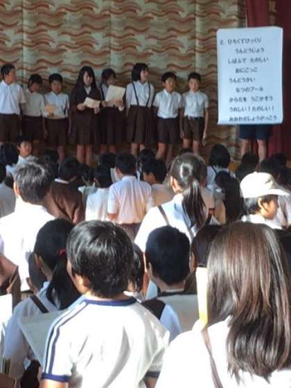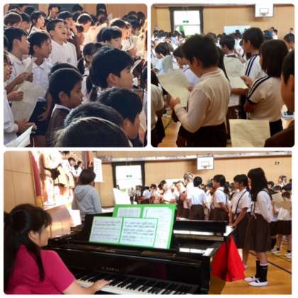 運営委員会の募集した「大和田小学校の歌」を藤田先生のピアノで練習しました。これから毎日練習を重ねます。学習発表会を楽しみにしてください。